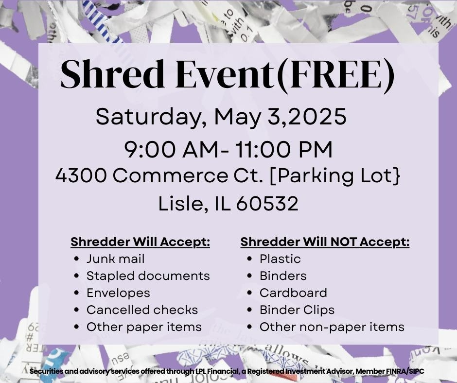There's nothing more important than protecting your identity. Responsibly destroying sensitive documents is a smart way to stay safe. Please join your Emerge Wealth Strategies team for our FREE Annual Shred Day Event. Shredding is done ON-SITE.